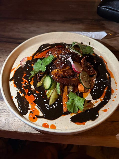 The food in Zipolite was incredible. There was a small beachside restaurant that served grilled octopus with mole negro that I still think about every night, even though this trip happened almost five months ago. One night, we went to an upscale restaurant that had tables on the sand.